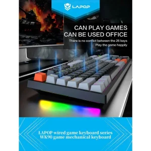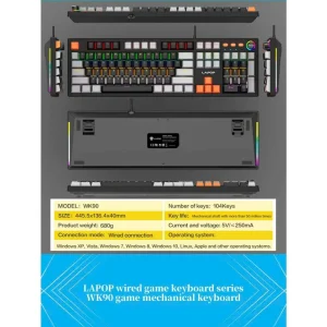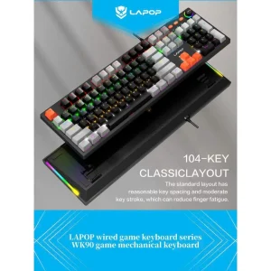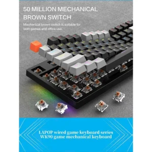 Bàn phím cơ có dây LAPOP WK90 – 104 phím, Brown Switch, 17 hiệu ứng RGB, Nút xoay âm lượng – Chính hãng – Full VAT